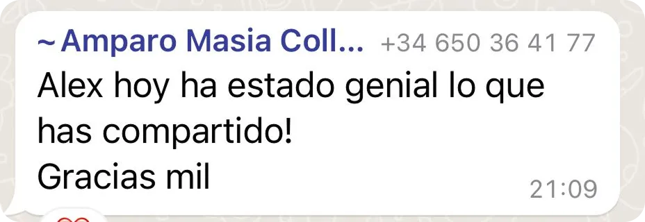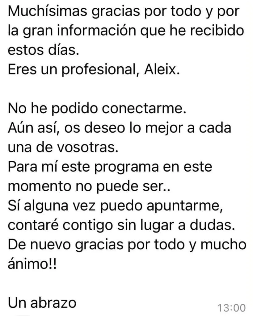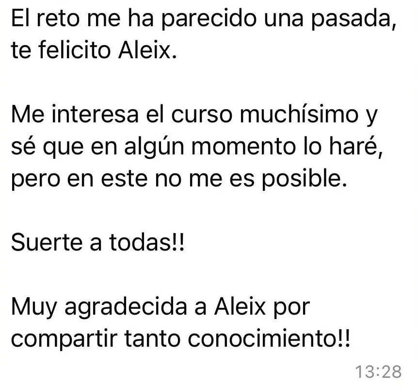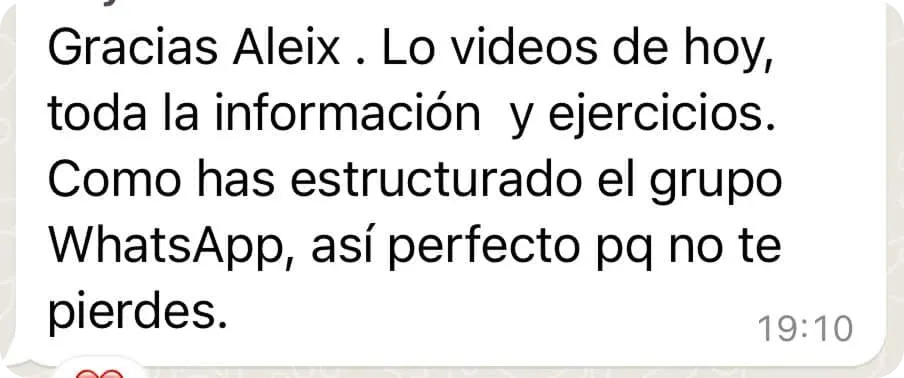 Todo el taller se da a través de WhatsApp, si no entras, no lo verás.
