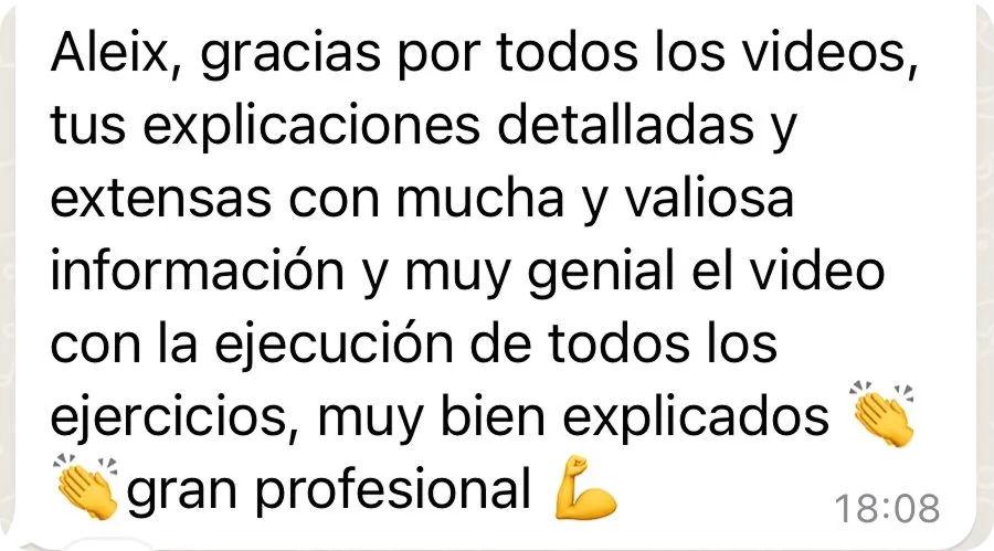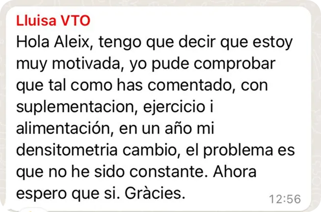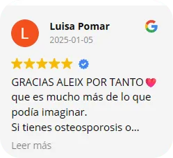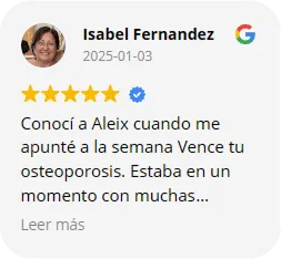 Ese día también te enviaré una rutina completa de fuerza sin necesidad de material, diseñada para incrementar la densidad ósea. Te la explicaré con tanto detalle que sentirás como si estuviera entrenando a tu lado.